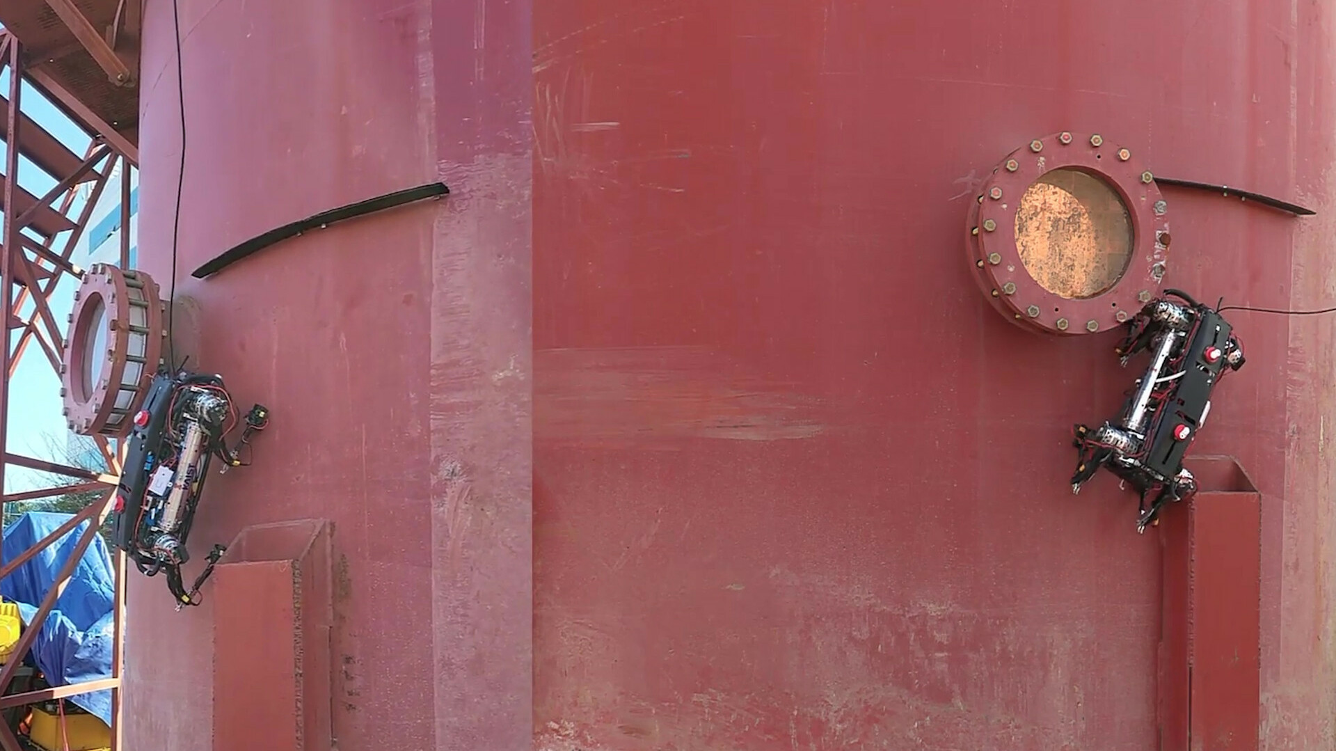 Vierbeiniger Roboter mit Magnetfüßen erklimmt Gebäude