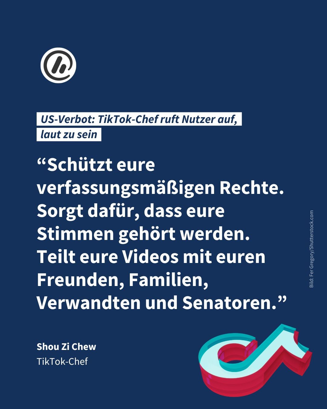 TikTok-Chef Shou Zi Chew hat sich in einer Ansprache an die Nutzer auf seiner Plattform zu Wort gemeldet und sie dazu aufgerufen, sich gegen ein mögliches Verbot von TikTok in den USA zu wehren. 📣