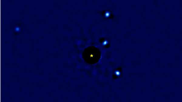 Das Mehrplanetensystem von HR 8799 war vor 14 Jahren das erste, das direkt abgebildet wurde. Nun zeigt ein Film, wie sich die Exoplaneten seitdem bewegt haben.