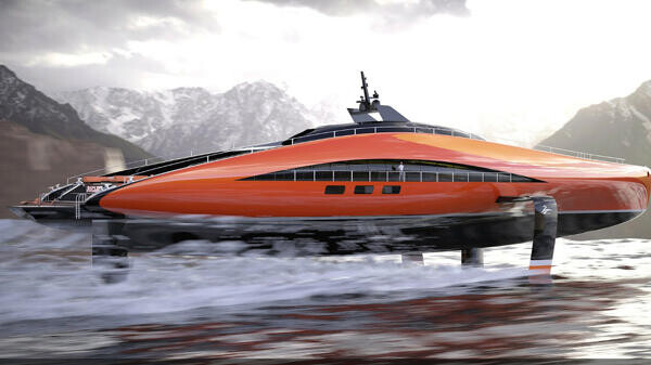 Den Designern von Lazzarini Design schwebt eine Superyacht mit Tragflächen vor, die wasserstoffgetrieben mit rund 139 km/h über das Wasser gleitet.