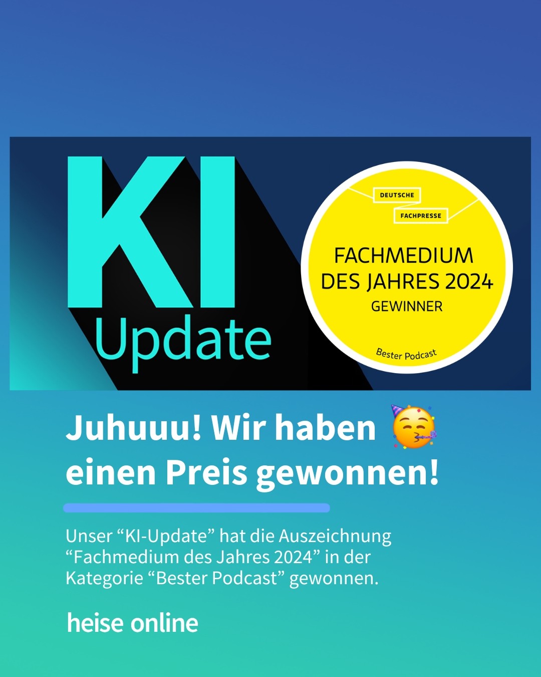 Juhuu! 🥳🥂 Unser Podcast "KI-Update" hat einen Preis abgesahnt! 🏆