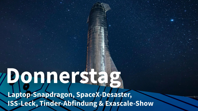 Snapdragon für Notebooks + Musk-Warnung vor Bankrott + Russland-Drohung nach ISS-Leck + Schadenersatz für Tinder-Mitgründer + #heiseshow über Exascale-RechnerFrank Schräer (heise online)