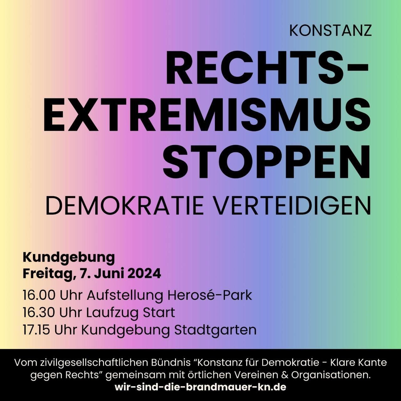 #Konstanz für Vielfalt und Demokratie. Kundgebung am Freitag, 7. Juni 2024.