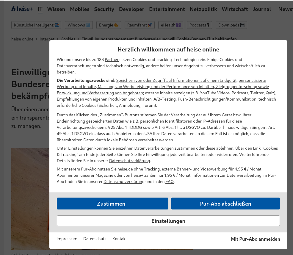 Einwilligungsmanagement: Bundesregierung will Cookie-Banner-Flut bekämpfen​