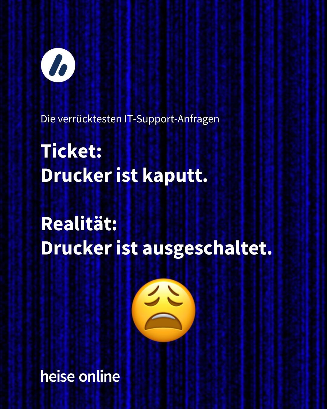 Stellte sich raus, dass der Drucker der Sekretärin wirklich seit einem Jahr kaputt war und sie in der Zeit den Drucker der Kollegin benutzt hatte. Der ging jetzt aber auch nicht mehr und sie musste Sachen für den Chef drucken.