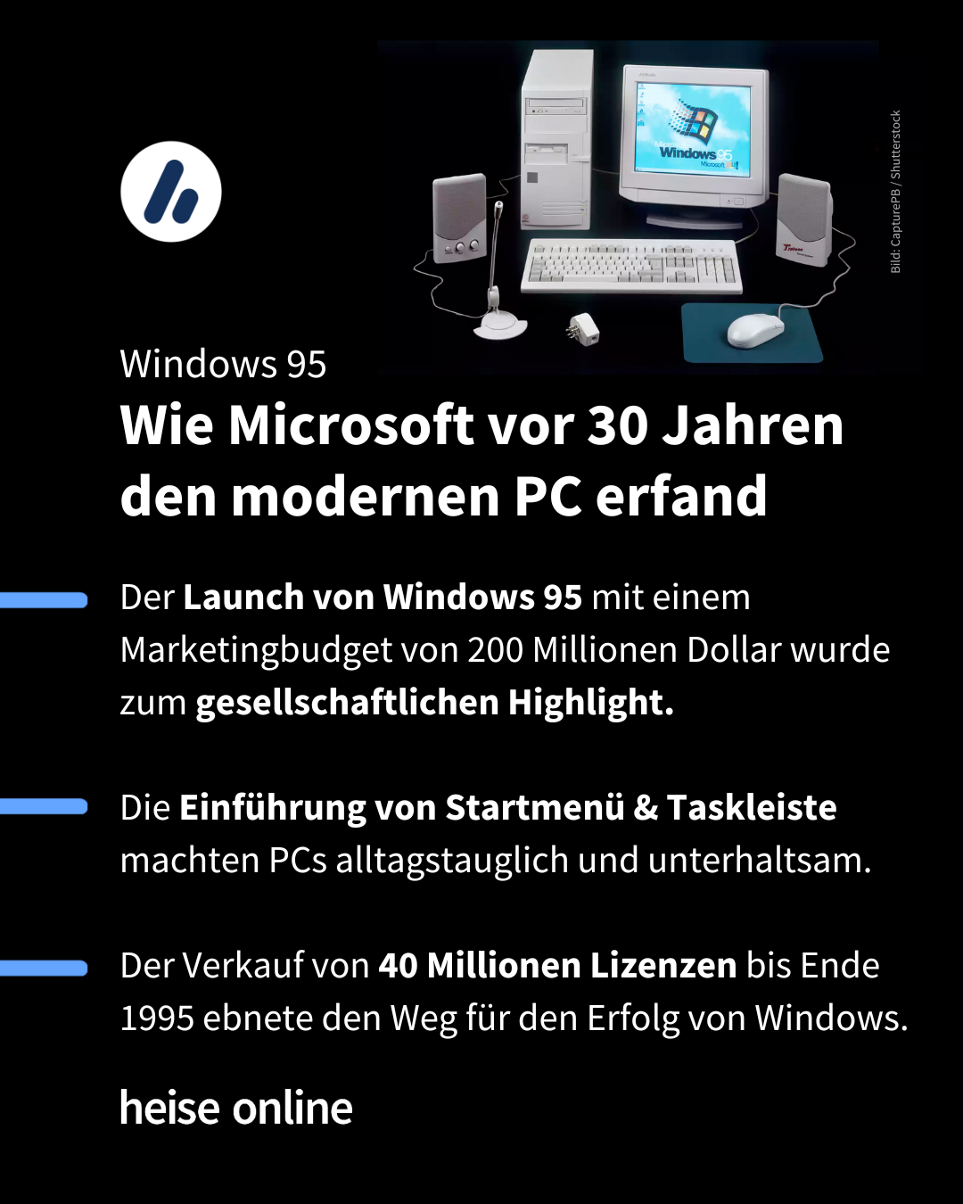 Vor dreißig Jahren hatte Microsoft starke Konkurrenz und reagierte mit Werbung. Doch auch technisch war Windows 95 besser als sein heutiger Ruf.heise online