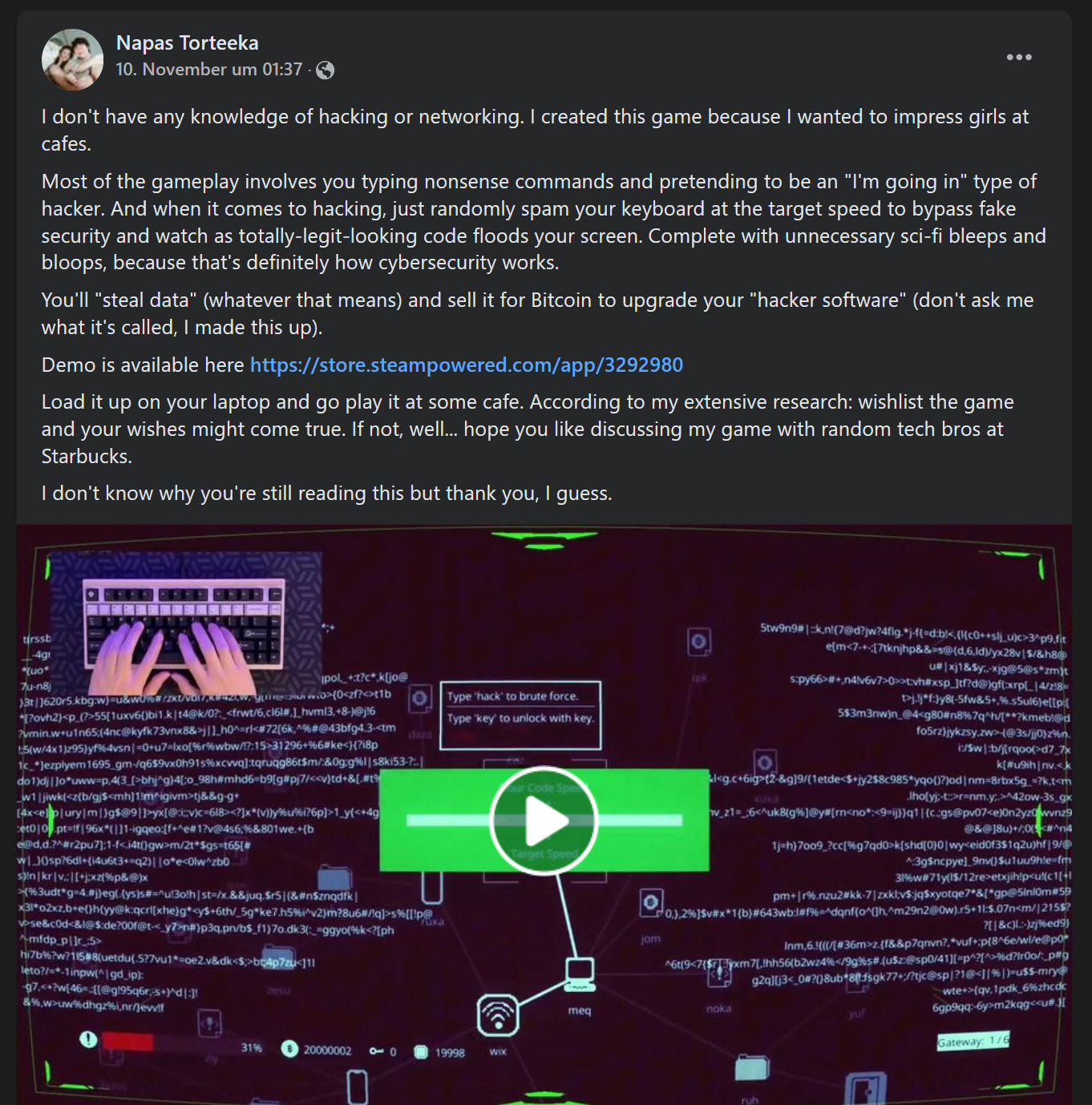 Wer neugierige Sitznachbarn beeindrucken oder sich einfach mal wie ein richtiger Film-Hacker fühlen möchte, wird auf Steam fündig.