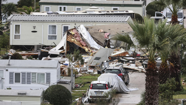 Beschädigte Gebäude, umgeknickte Bäume, Autos mit zertrümmerten Scheiben: Ein Sturm hat Portugals Südküste schwer getroffen. Auf einem Campingplatz starb ein Mensch, zudem wurden zahlreiche Verletzte registriert.