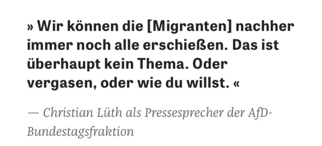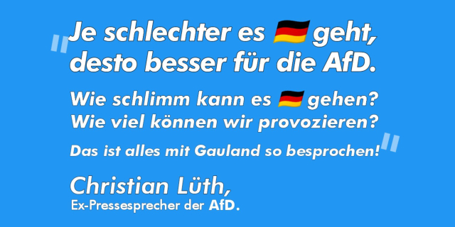 Der langjährige Parteisprecher Lüth sprach über die Möglichkeit des Erschießens oder Vergasens von Migranten - und wurde er fristlos entlassen. Mittlerweile arbeitet wieder für mehrere AfD-Abgeordnete. Wie kann das sein? Von Kilian Pfeffer.